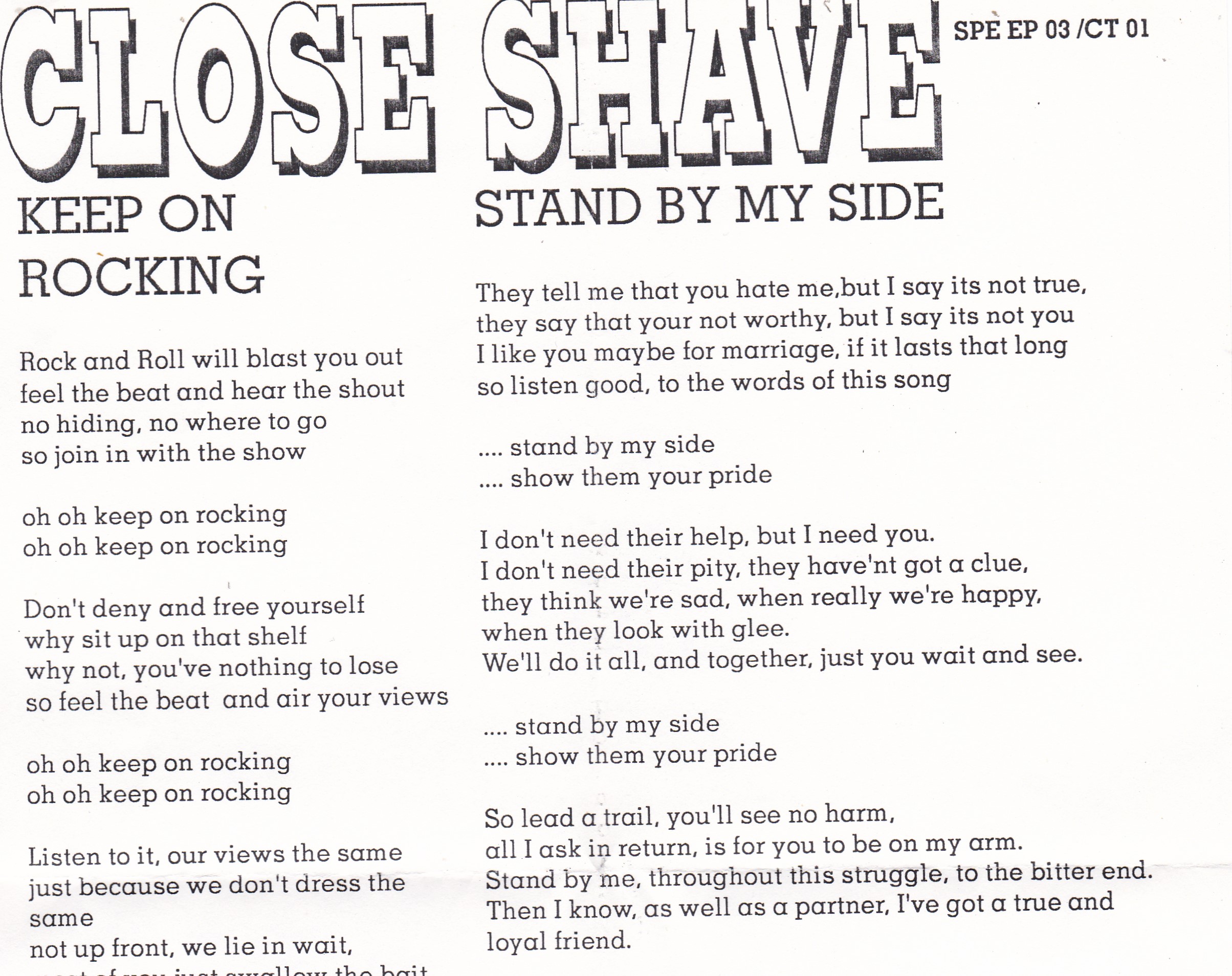 CLOSE SHAVE – Keep On Rocking / Stand By My Side