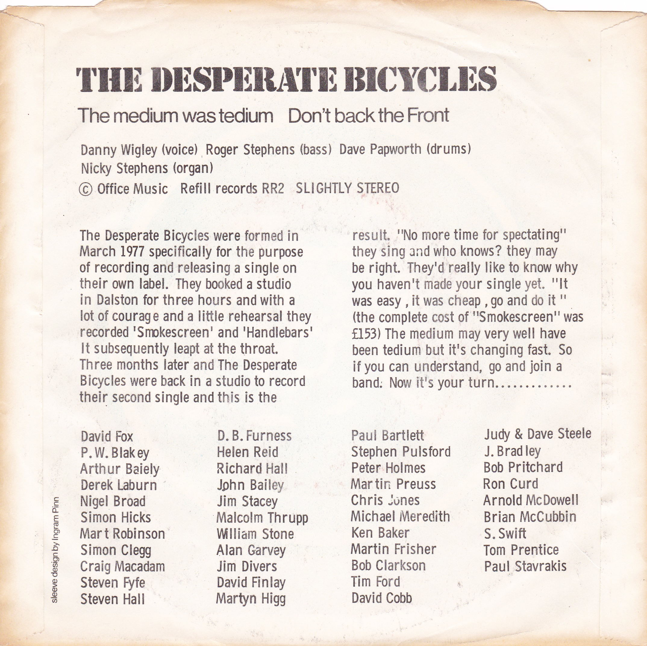 DESPERATE BICYCLES : The Medium Was Tedium / Don’t Back The Front