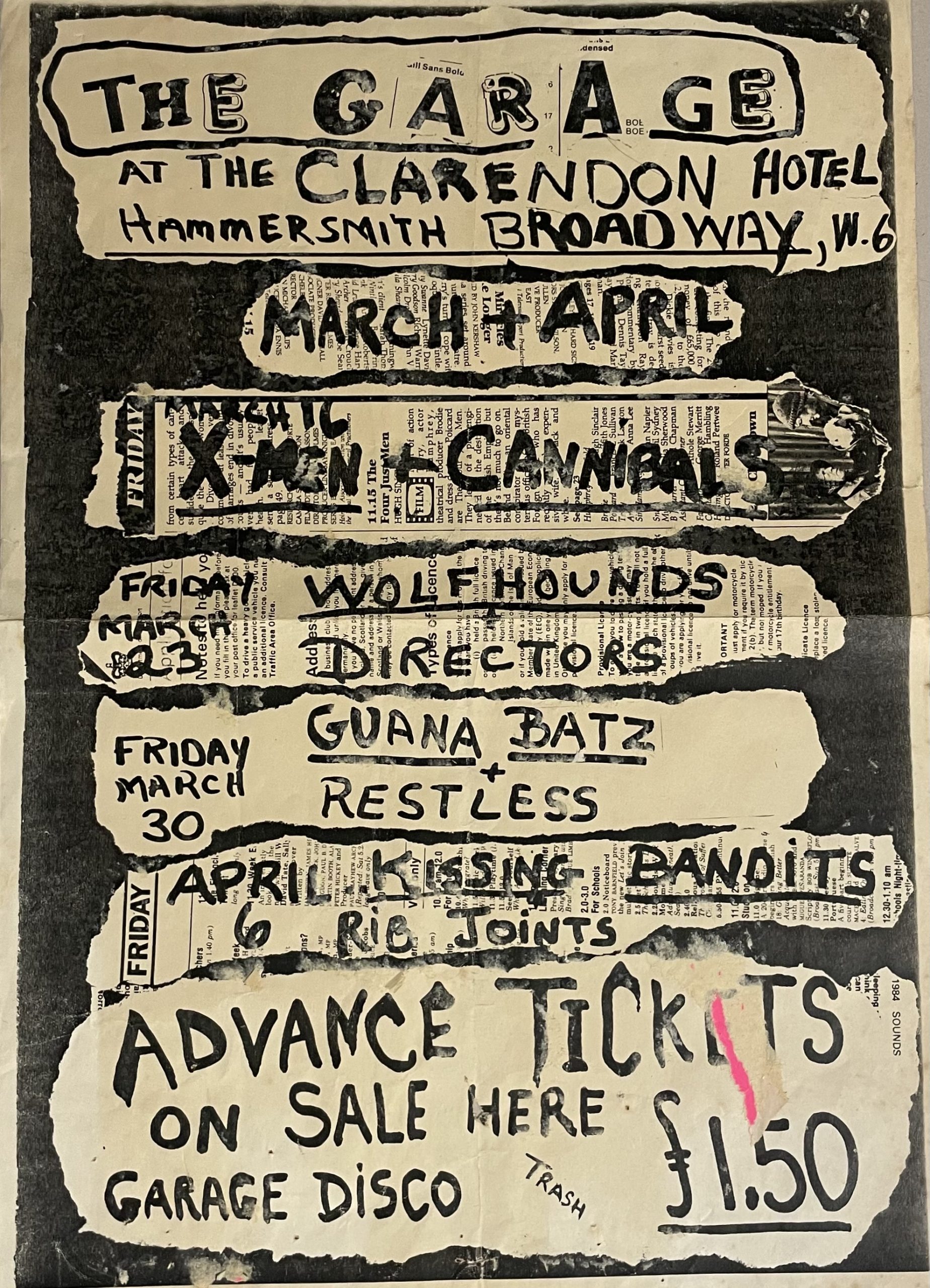 THE GARAGE – At The Clarenton Hoel – Poster (1984) Featuring: X-Men, Canibals, Guan Batz, Restless, Directors… Size: 41 x 30 cm