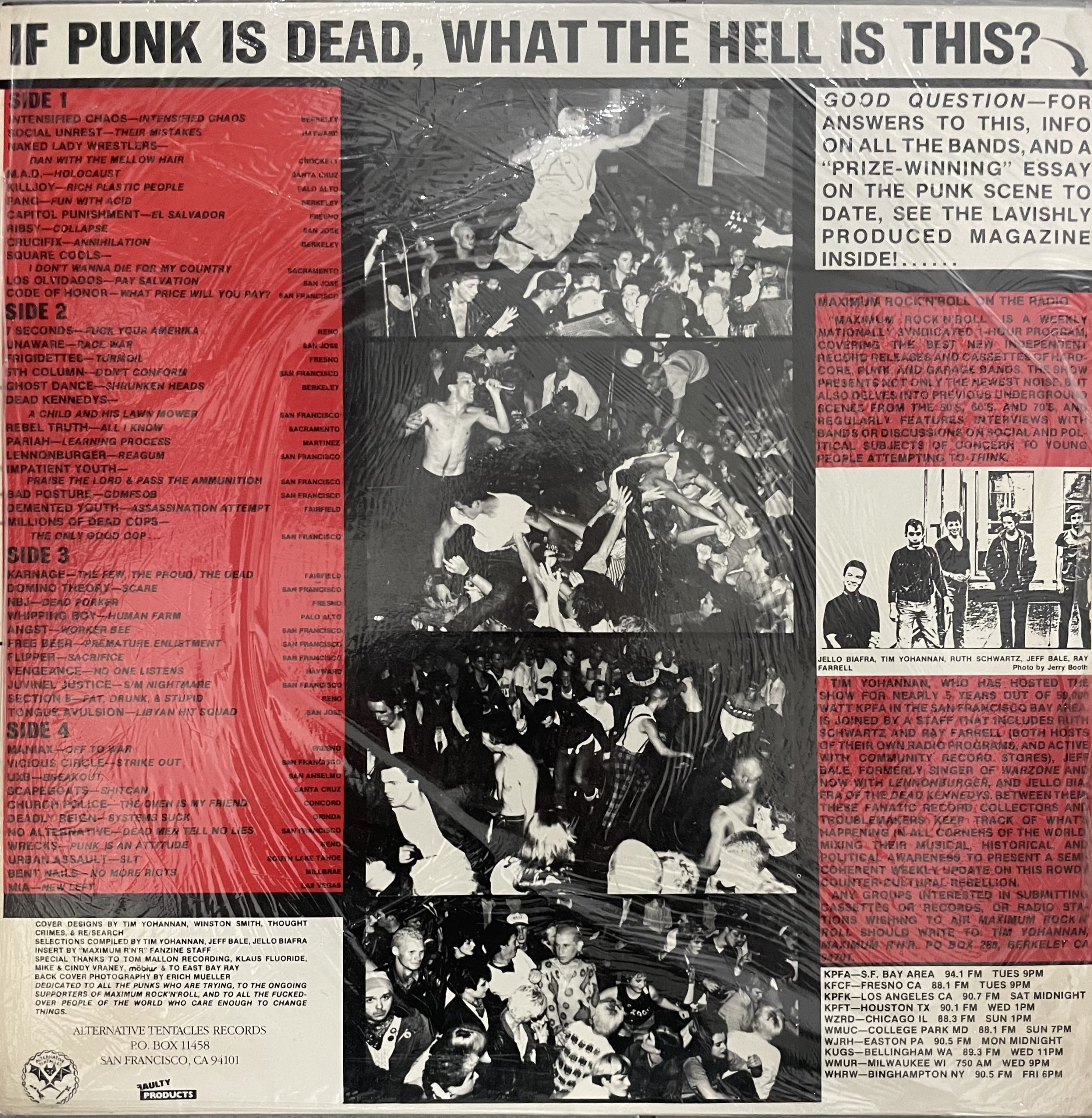 Including : Intensified Chaos, Social Unrest, Naked Lady Wrestlers, M.A.D., Killjoy, Fang, Capitol Punishment, Ribsy, Crucifix, Square Cools, Los Olvidados, Code Of Honor, 7 Seconds, Unaware, Frigidettes, 5th Column, Ghost Dance, Dead Kennedys, Rebel Truth, Pariah, Lennonburger, Impatient Youth, Bad Posture, Demented Youth, MDC, Karnage, Domino Theory, NBJ, Whipping Boy, Angst, Free Beer, Flipper, Vengeance, Juvinel Justice, Section 8, Tongue Avulsion, Maniax, Vicious Circle, UXB, Scapegoats, Church Police, Deadly Reign, No Alternative, Wrecks, Urban Assault, Bent Nails, MIA